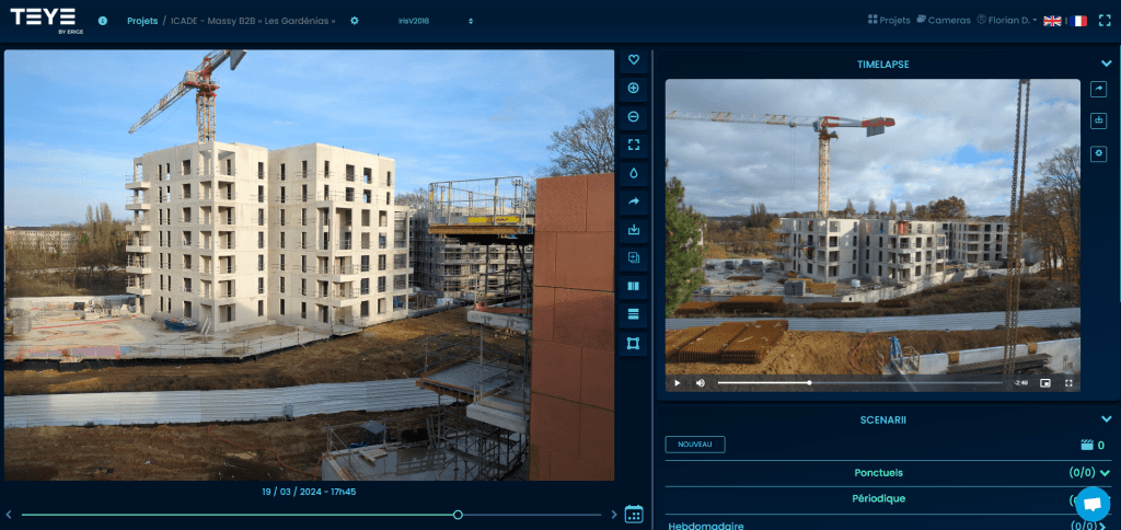 De plus, notre plateforme intuitive TEYE offre à ses clients un accès illimité à cette fonctionnalité, leur permettant ainsi de créer des timelapses mettant en valeur les phases les plus remarquables et significatives de leurs projets sans les éléments indésirables tels que les temps morts, les jours de pluie ou tout autre facteur pouvant altérer la clarté et la cohérence des images.